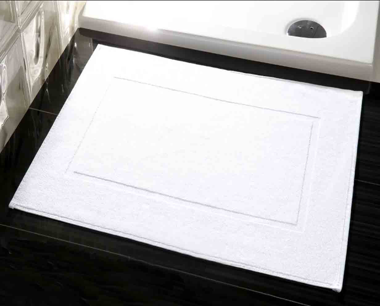 Hochwertige Badvorleger / Badematten für den Hotelbedarf in der Größe 50x70cm Gewicht: 600gr/m² in weiß. Die Badevorleger aus 100% Zwirn-Frottier sind besonders strapazierfähig und sehr saugstark.
